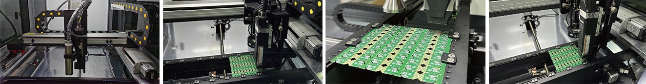 Applied to surface plasma treatment and spray printing of various types of PCBs, FPCs, Mini LED substrates, metal shielding covers, and other materials; Capable of rotating multiple angles for printing; Ink can be sprayed and dried immediately. The printed content can be wiped with alcohol before reflow soldering. After high-temperature curing in the furnace, the ink can resist alcohol, friction, and IPA corrosion.
