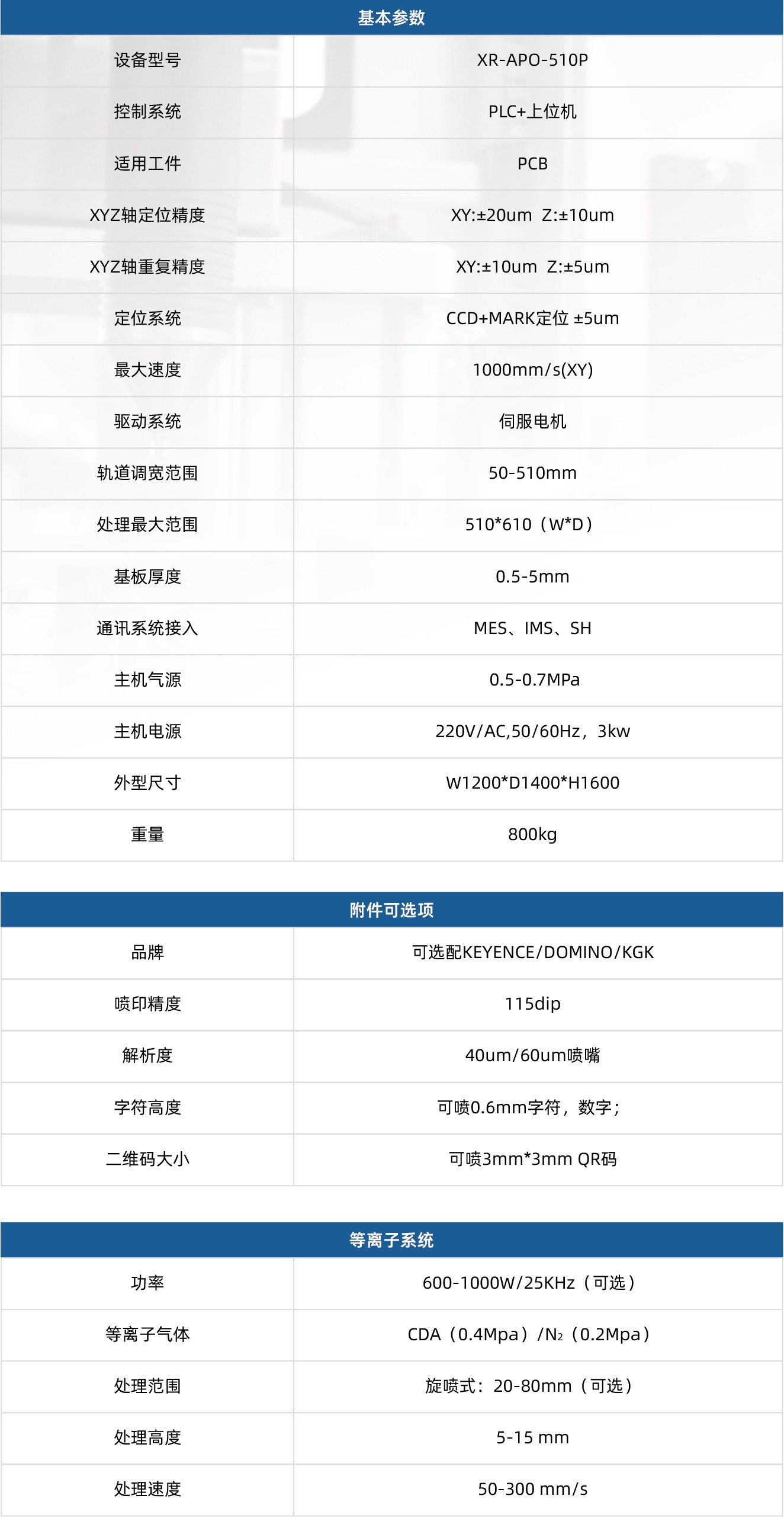 ·Online fully automatic high-speed plasma cleaning+coding (optional)+code reading detection (optional) equipment · High cost-effectiveness: integrated rack design, stable mechanism; Controlled by upper computer software, it automatically completes Mark point recognition and positioning, plasma processing, coding, and code reading processes, resulting in higher efficiency; Using international top-level components to reduce the occurrence rate of failures, greatly reduce usage costs, minimize vulnerable parts, save purchase costs, and improve productivity: reduce manual intervention, improve equipment utilization rate, multifunctional assembly, plasma treatment to enhance coding effect and post solder paste printing quality, and improve yield rate